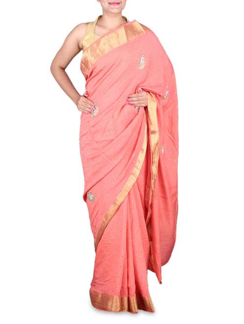 #1 coral cotton zari applique saree & similar products...