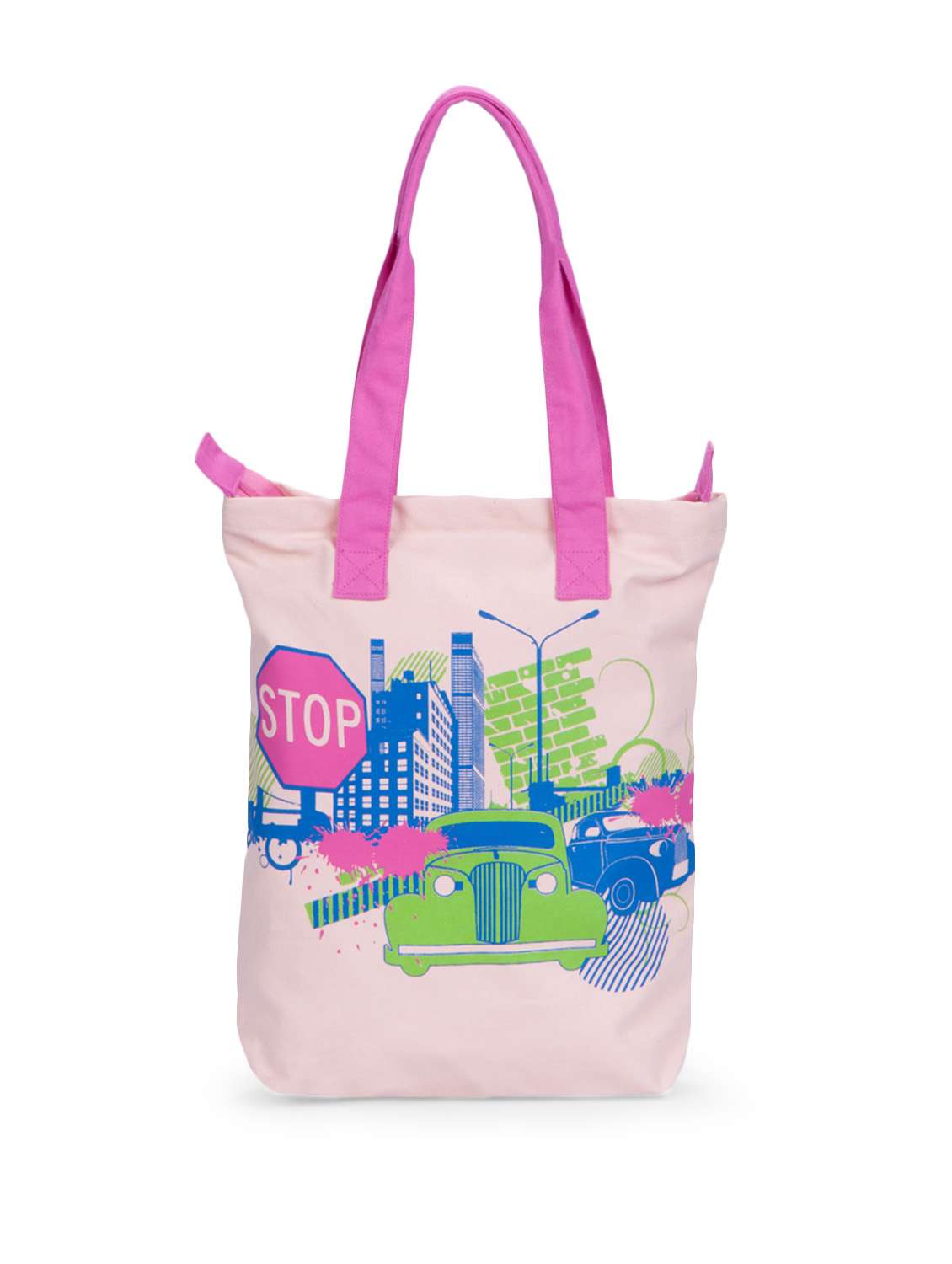 #3 stylish pink canvas shopping bag with car prints & similar products...