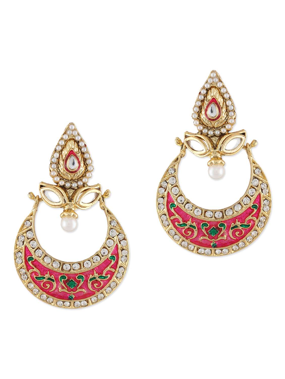 #2 pink kundankari crystal chand bali earrings & इसी तरह के उत्पाद...