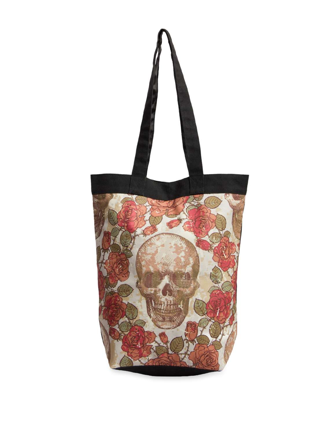 #5 trendy multi-coloured floral with skull print tote bag & similar products...
