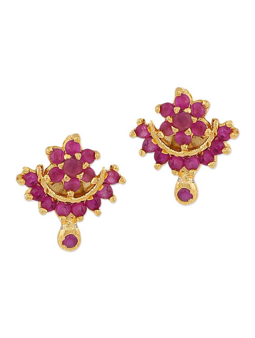 #4 pink embellished brass drop earrings & similar products...