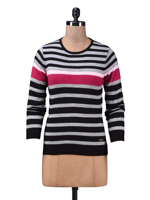 #1 Black And Grey Striped Acrylic Sweater & similar products...