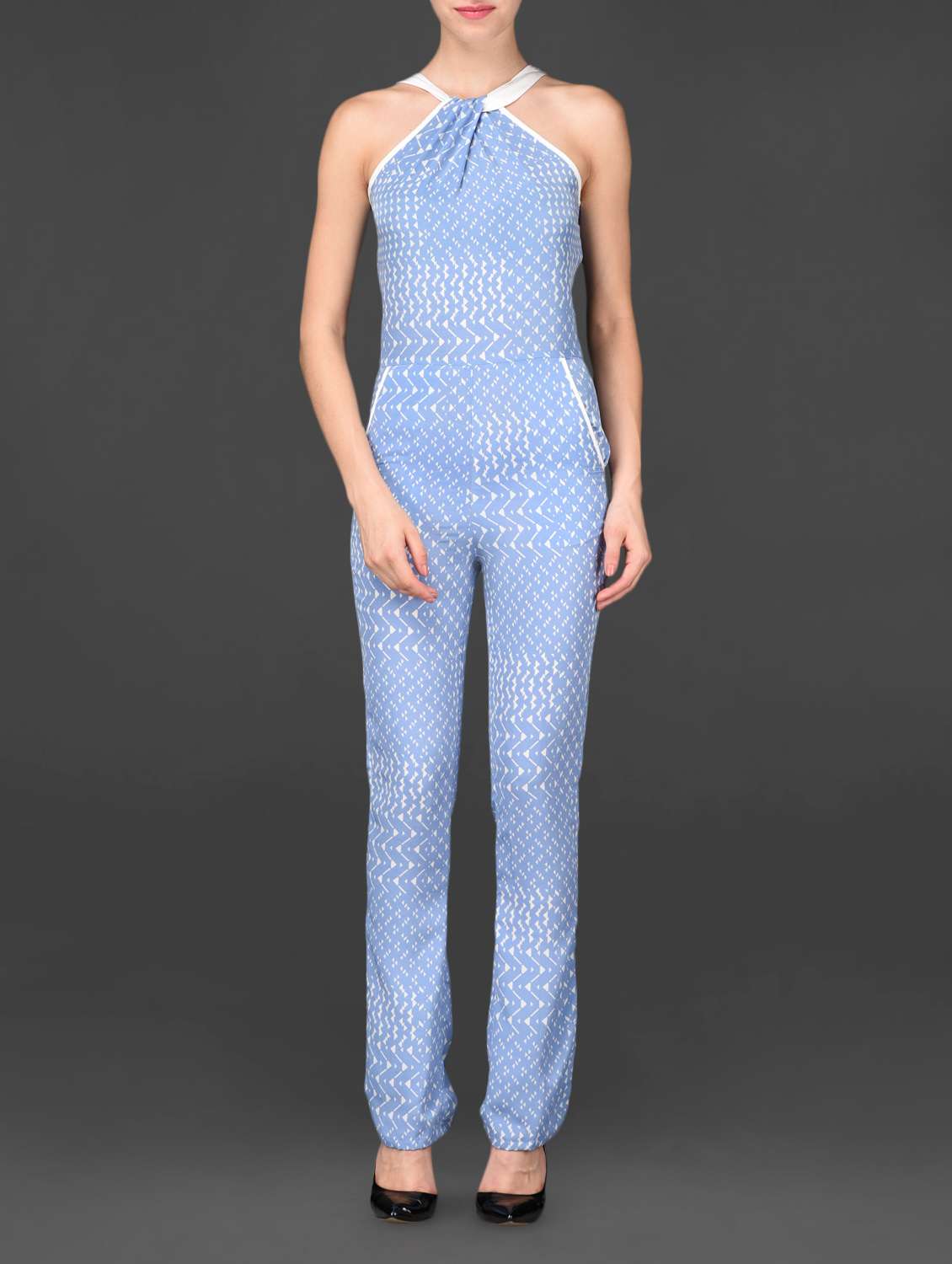 #1 Sleeveless blue printed poly crepe jumpsuit & similar products...
