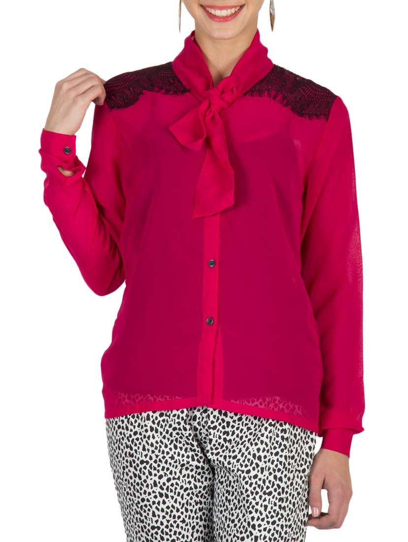 #1 hot pink sheer shirt with tie up collar & similar products...