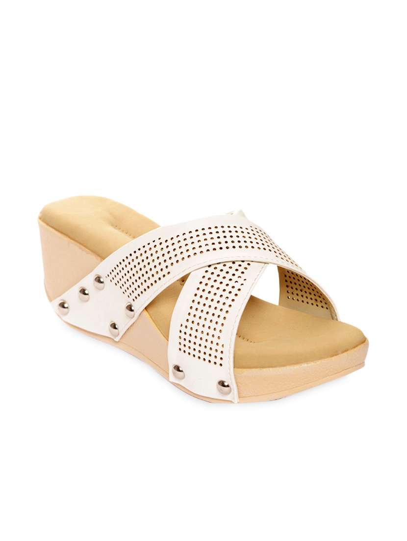 #4 white faux leather cut worked open toe wedge & similar products...
