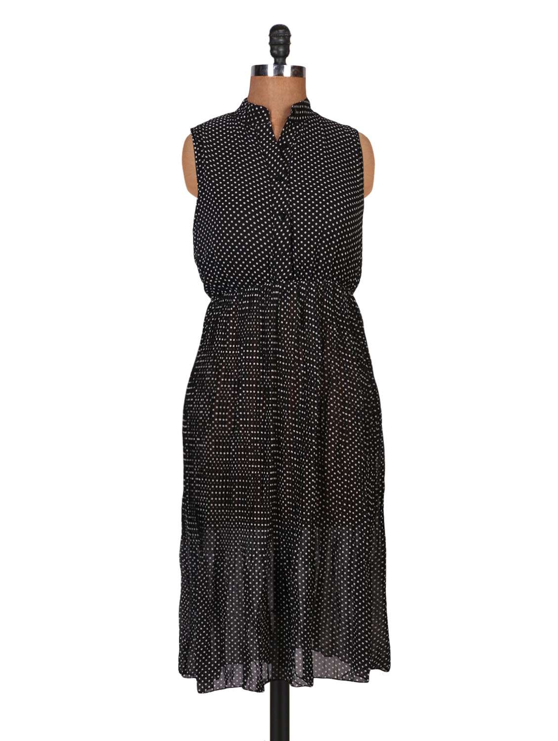 #1 black polka-dotted sleeveless georgette dress & similar products...