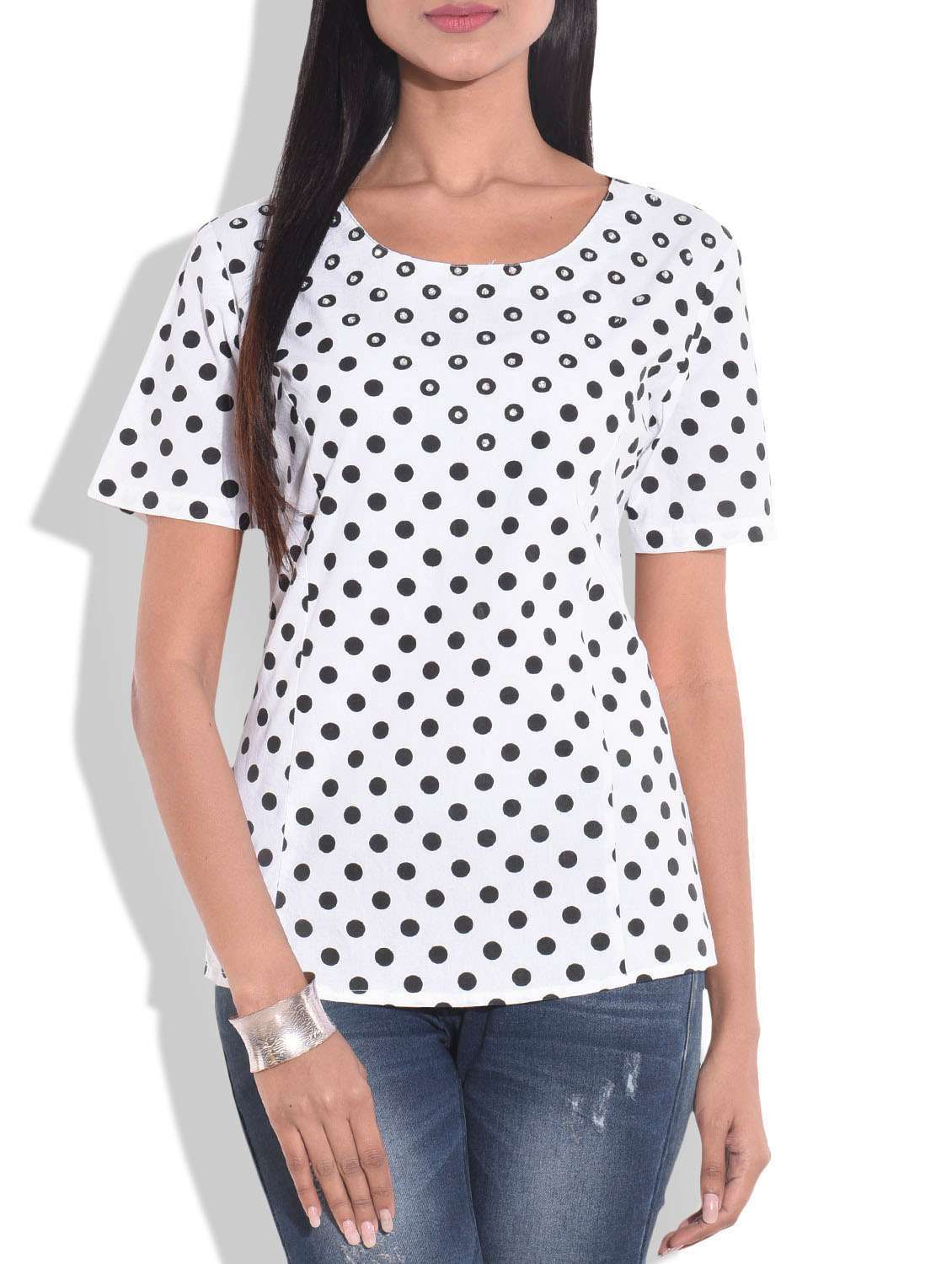 #2 black and white cotton polka dot top & similar products...