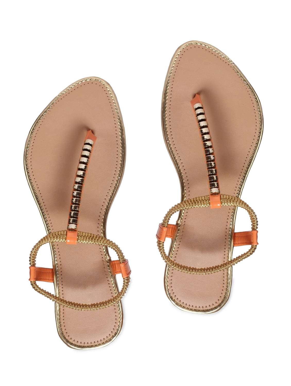 #3 orange embellished thin strap flat sandals & similar products...