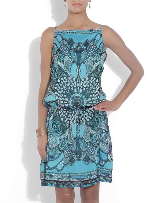 #1 blue polygeorgette printed dress & similar products...