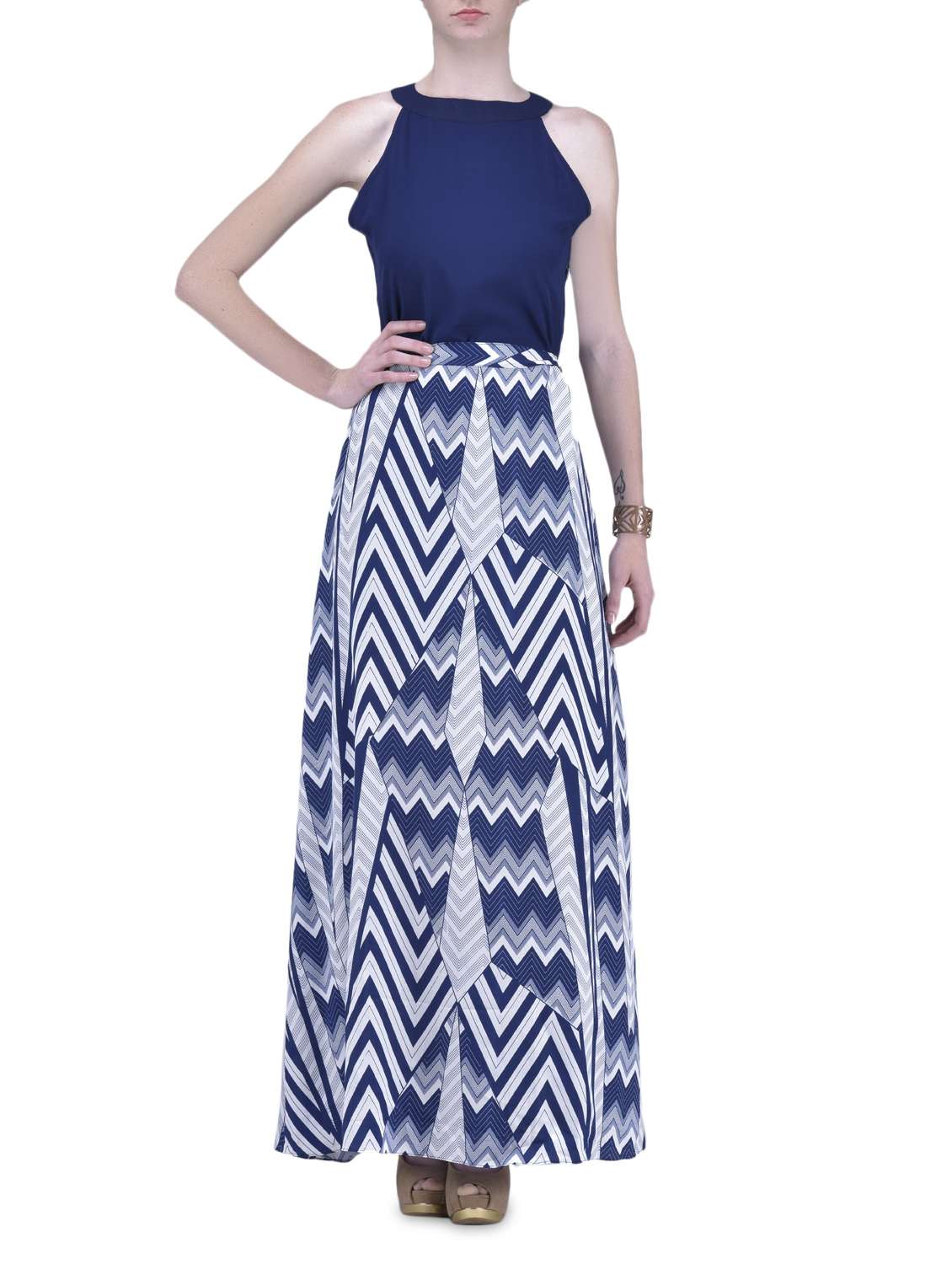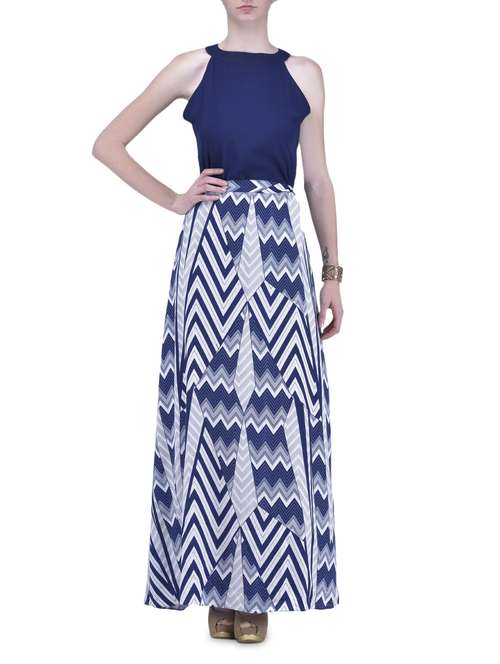 #1 navy and white printed poly georgette maxi dress & similar products...