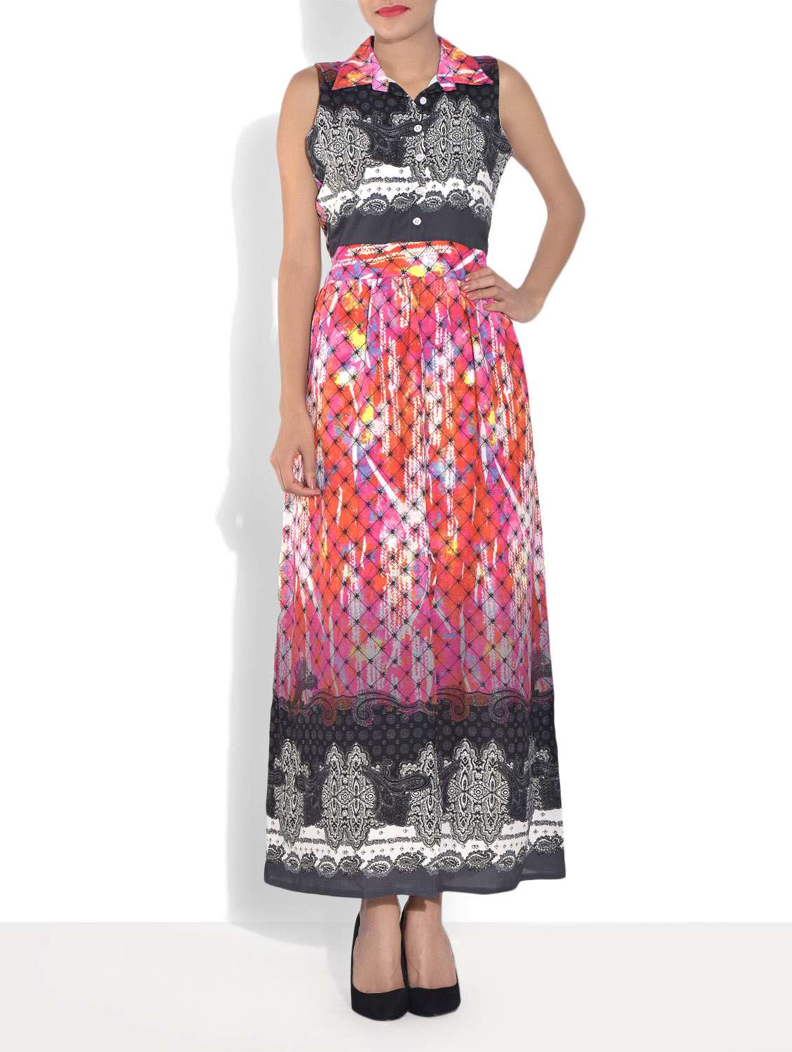#1 pink crepe and georgette printed sleeveless a-line dress & similar products...