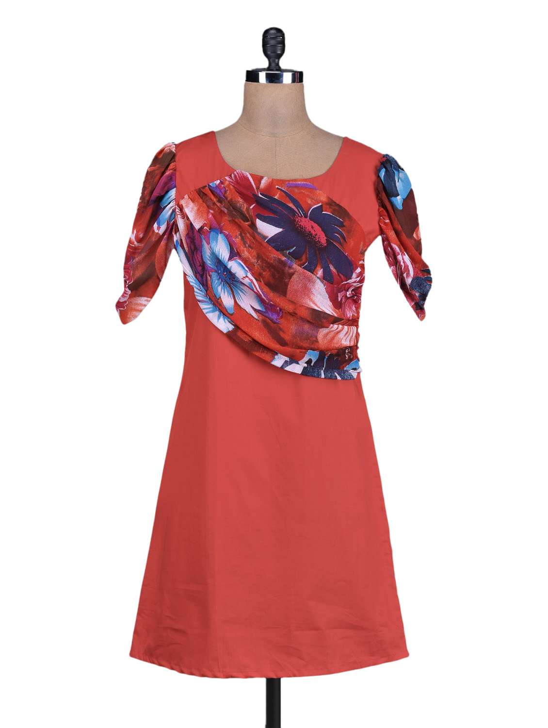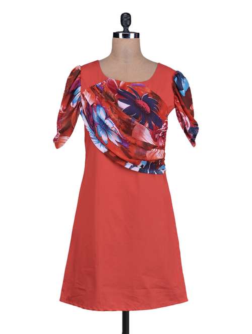 #1 red printed gathers poly cotton and georgette dress & similar products...
