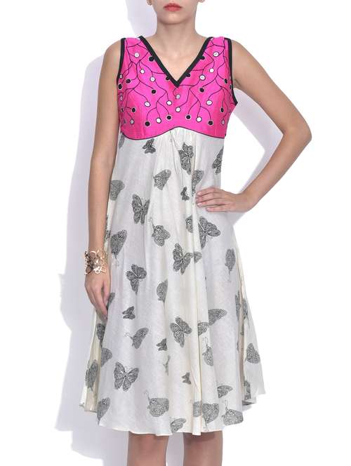 #1 white butterfly printed cotton dress & similar products...