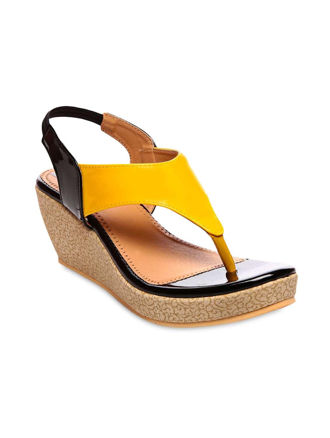 #2 Yellow and black faux leather wedges & similar products...