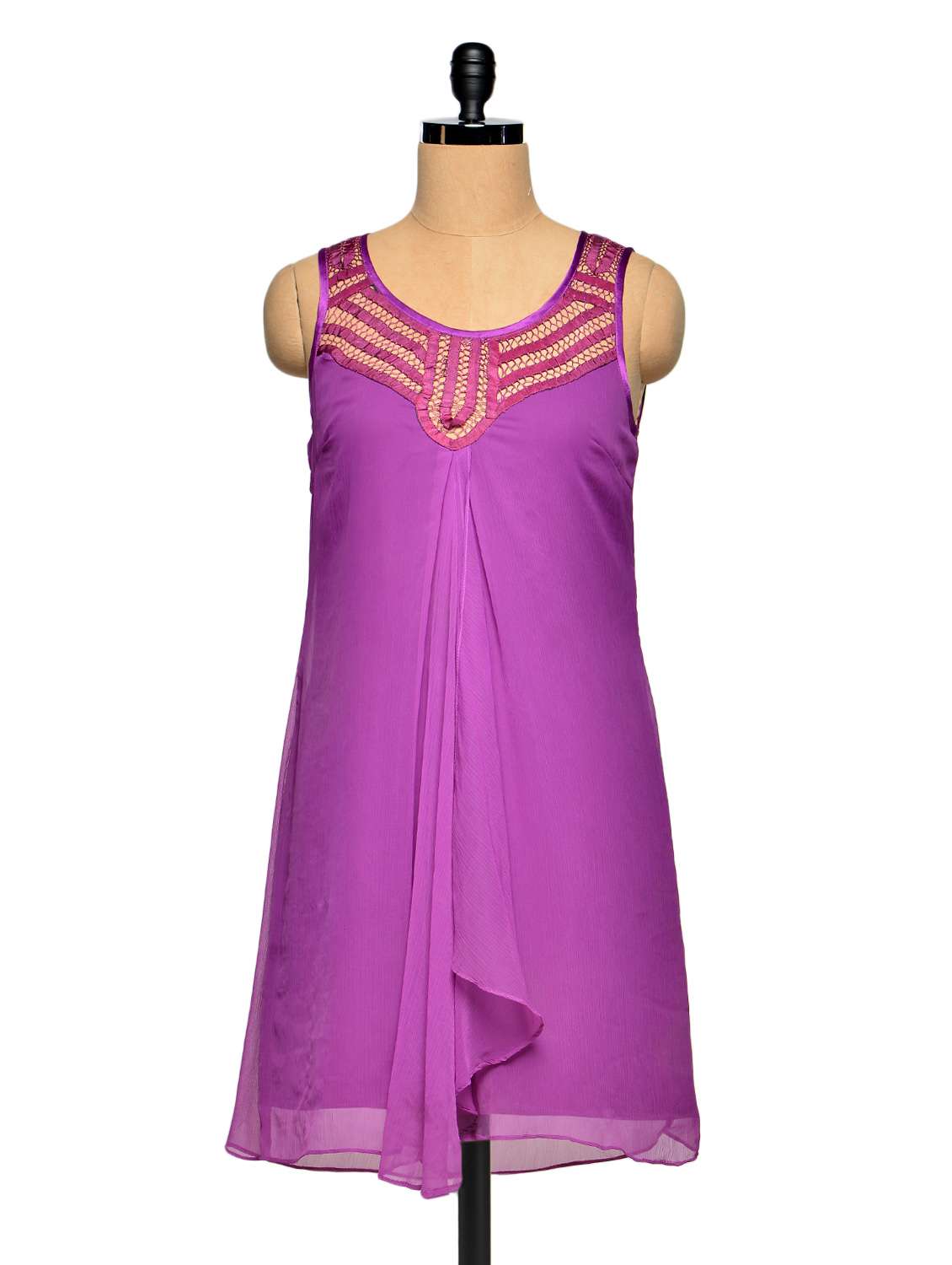 #1 elegant lilac embroidered sleeveless sheath dress & similar products...