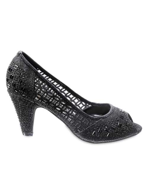 #1 glittery black crystal embellished peep toe pumps & similar products...