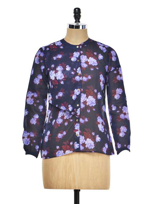 #1 purple floral print ruffle top & similar products...