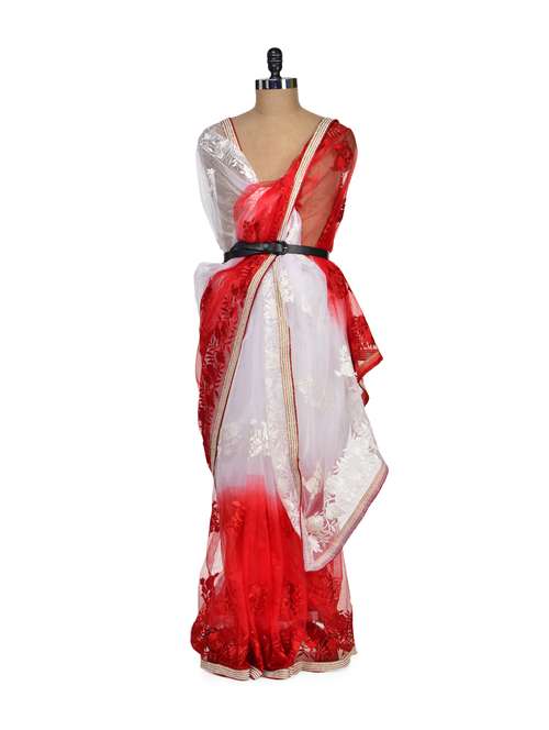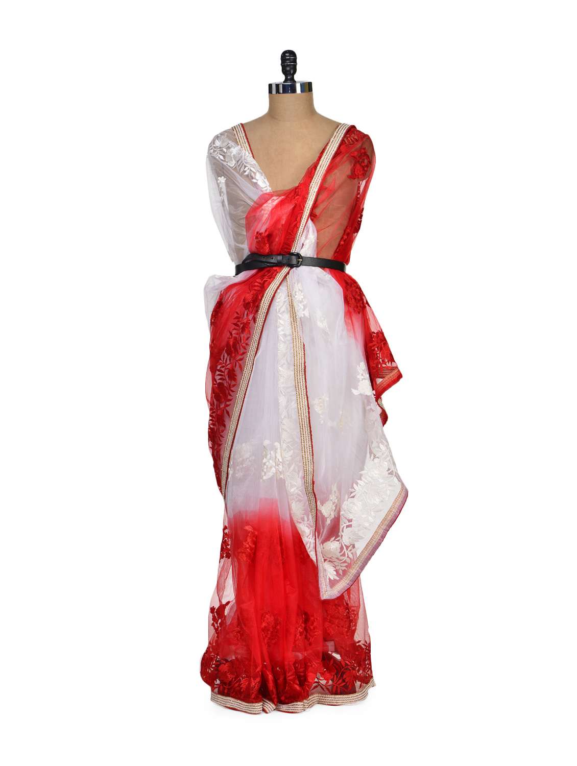 #1 red and white net saree & इसी तरह के उत्पाद...