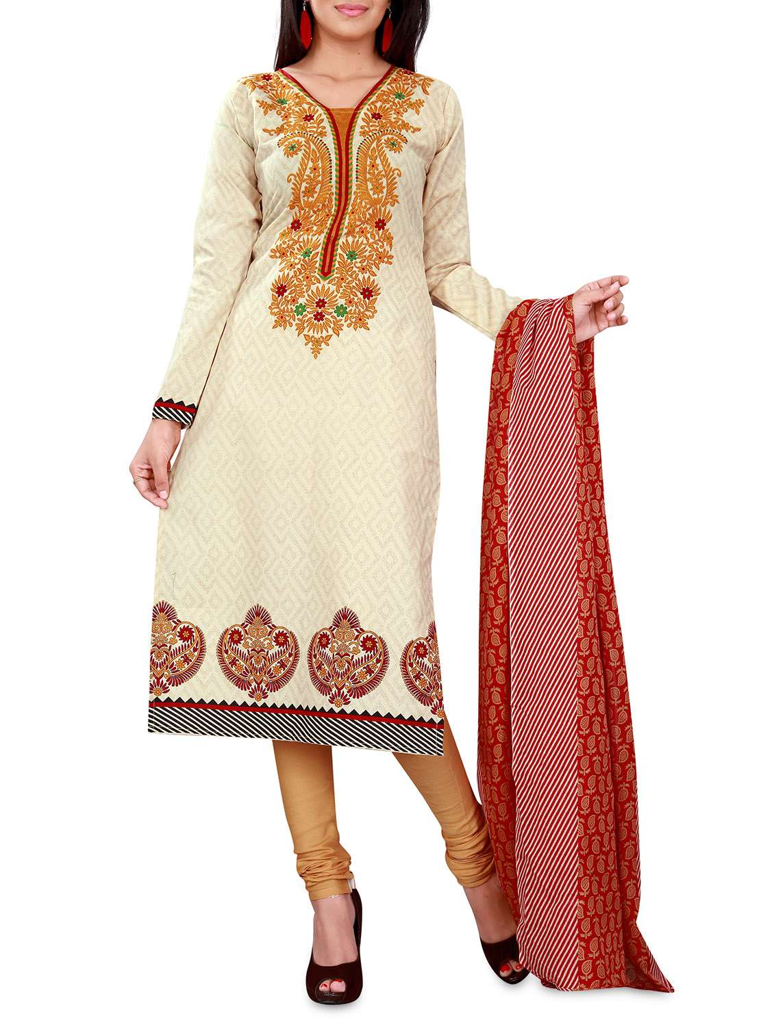 #1 cream poly cotton printed suit set & similar products...