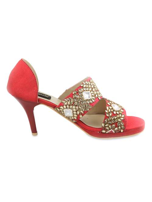 #1 red stones and beads embellished faux leather stilletoes & similar products...