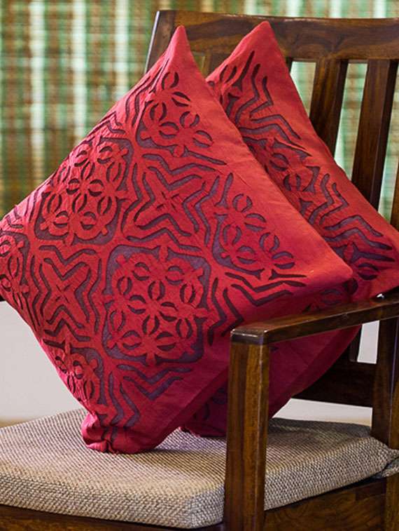 #3 exclusivelane applique art cushion cover in soft cotton - set of 2 & similar products...