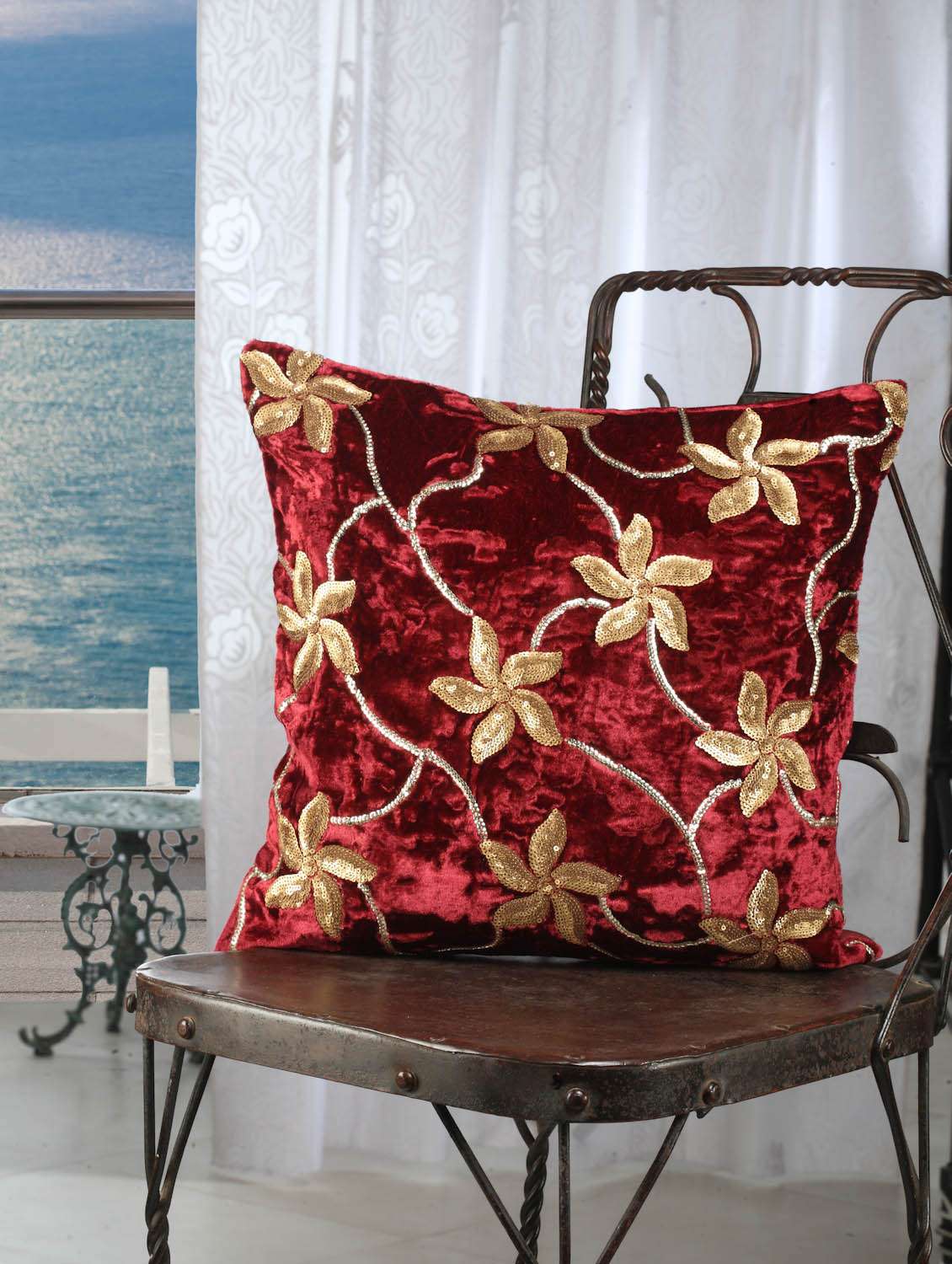 #3 Maroon velvet flower sequence cushion cover (set of 5) & इसी तरह के उत्पाद...