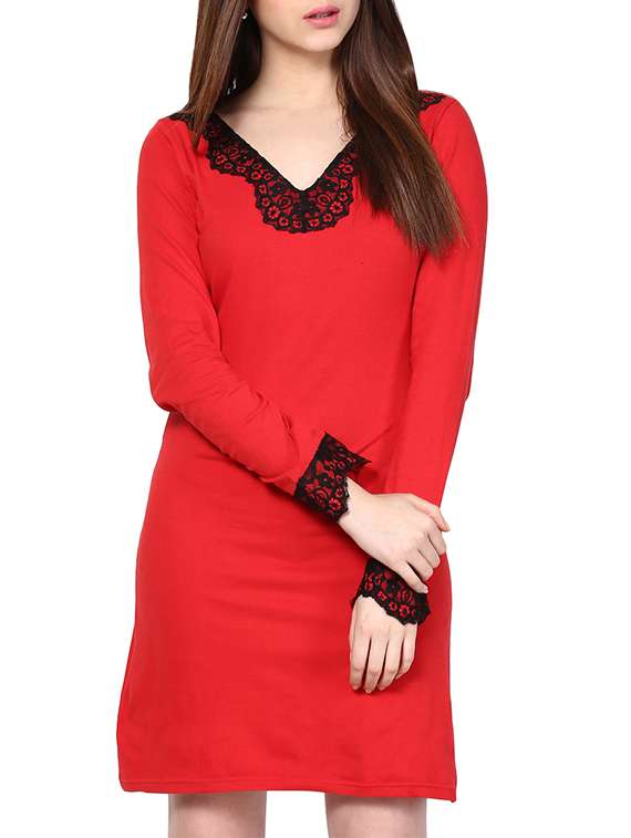 #1 knitted red dress with lace cuffs & similar products...