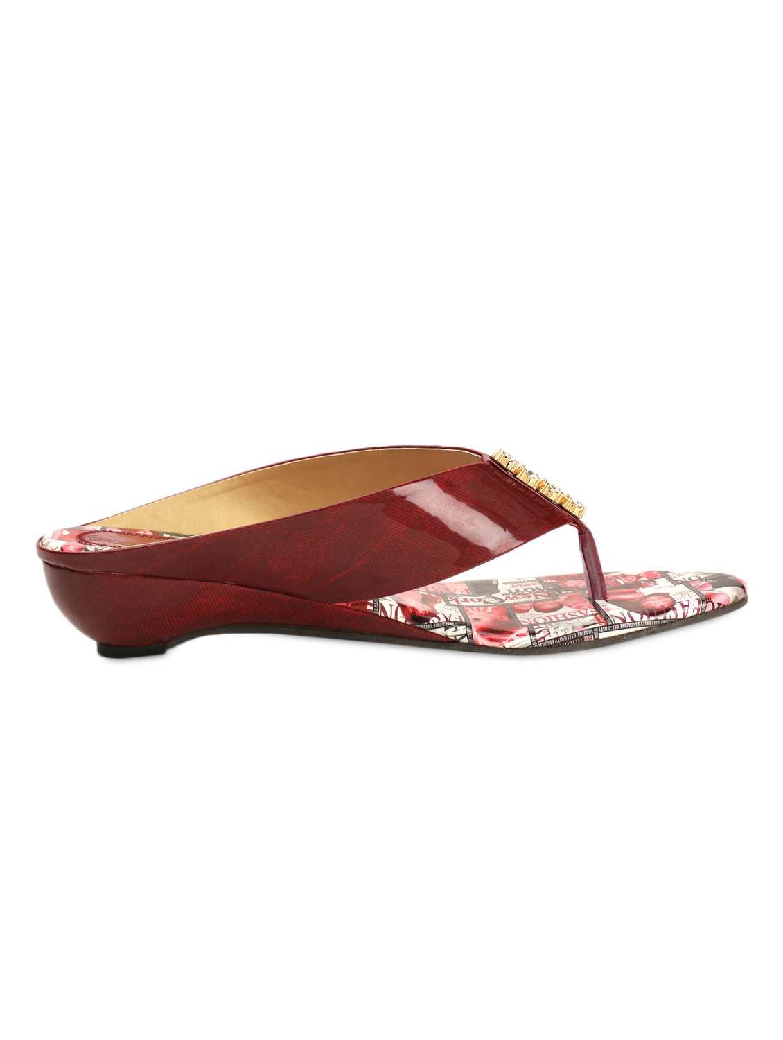 #4 maroon wedge with printed sole and crystals on strap & similar products...