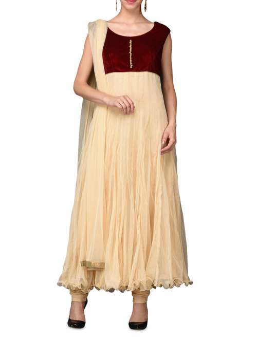 #1 beige and maroon anarkali suit set & similar products...