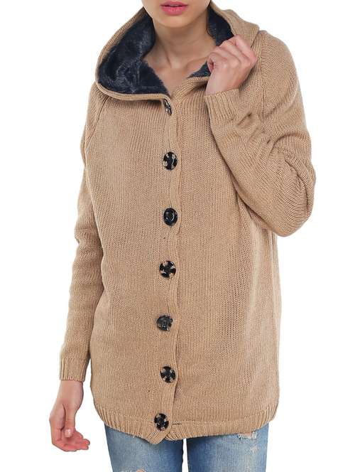 #1 beige long hooded sweater & similar products...