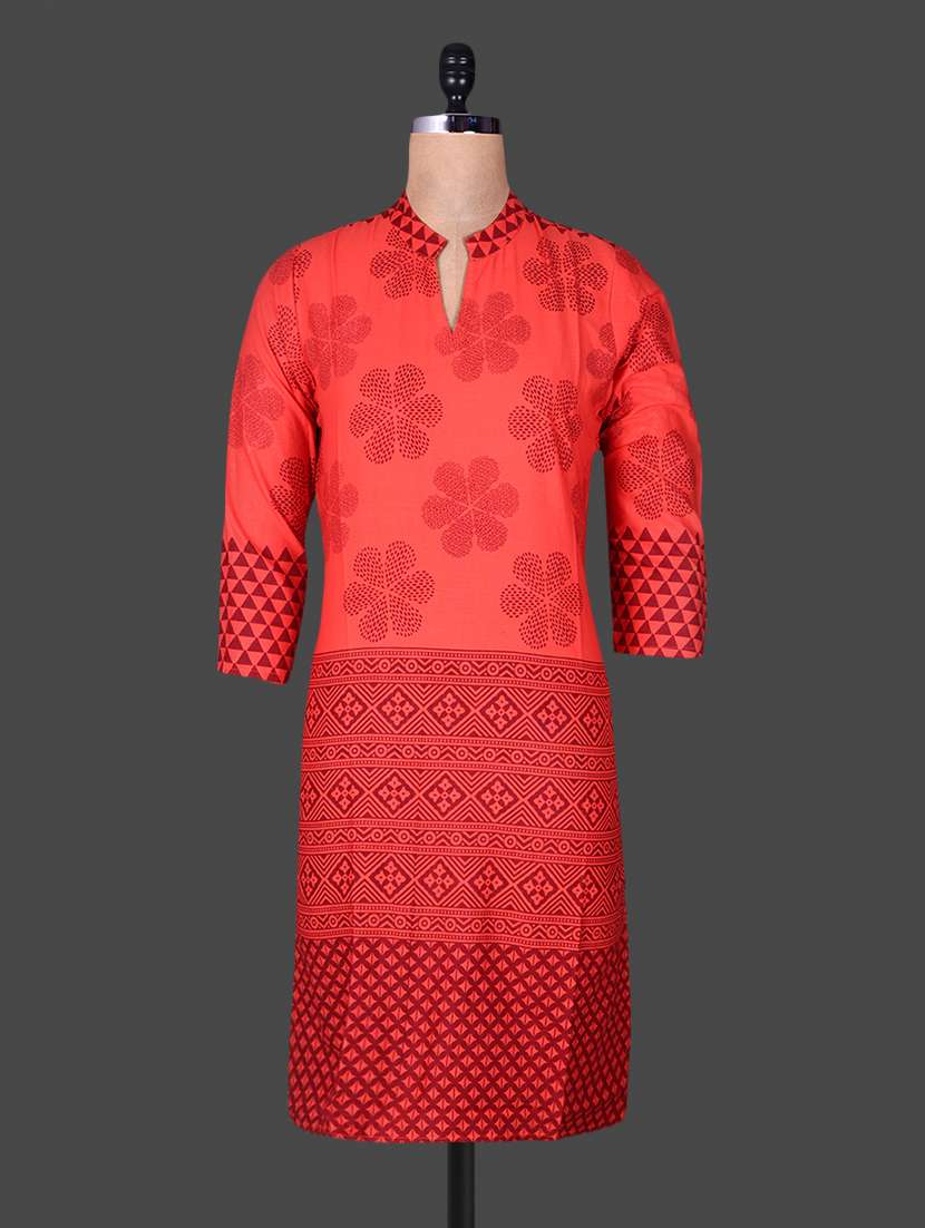 #1 Floral print quarter sleeve mandarin collar red kurta & similar products...