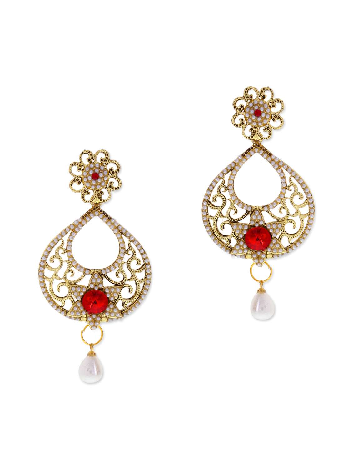 #2 gold and white pearl embellished cutwork earrings & similar products...