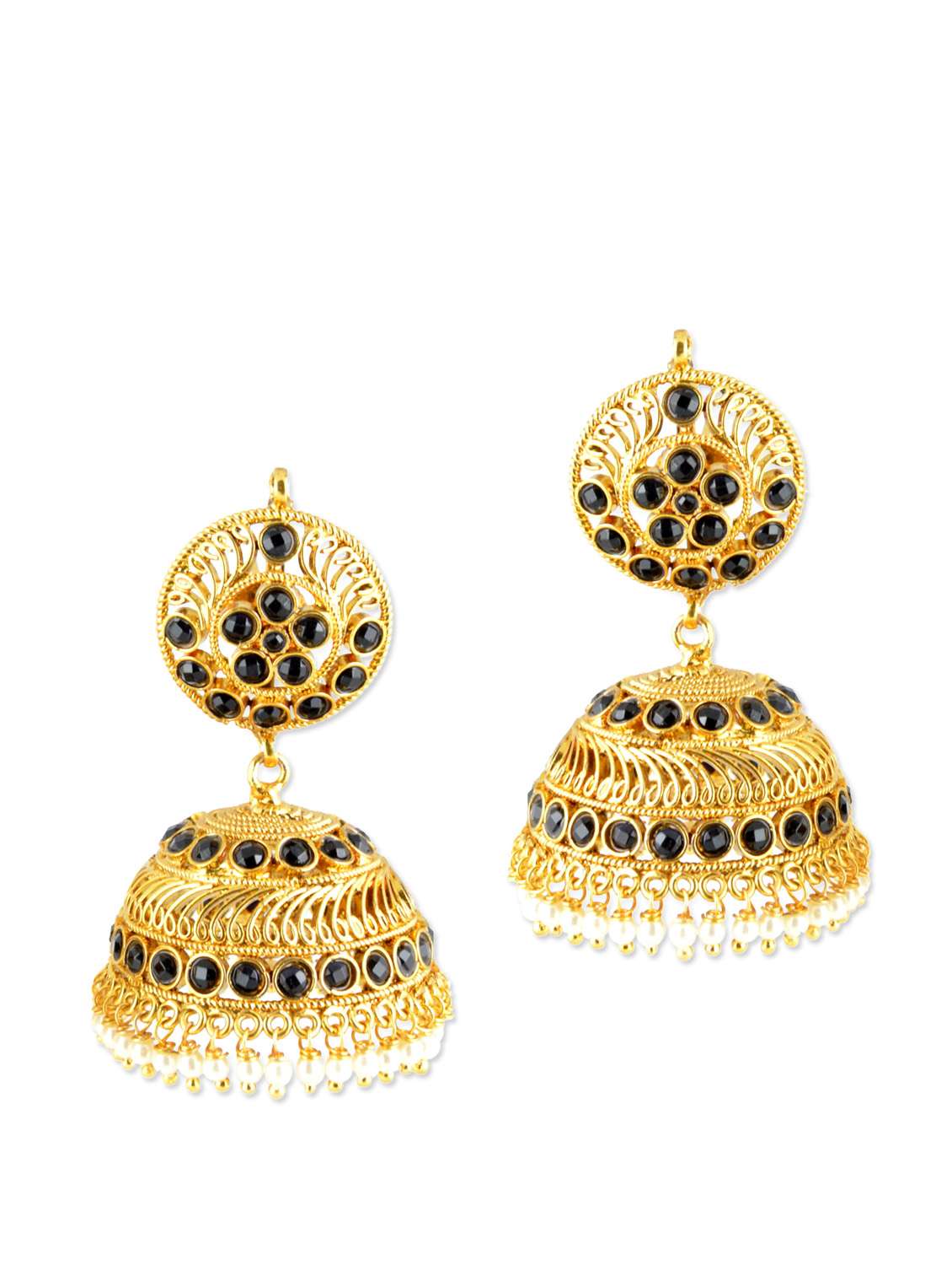 #2 traditional gold jhumkas with black stones & similar products...
