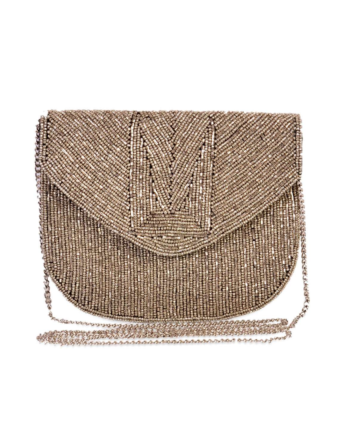 #4 Gold and black beaded clutch bag & similar products...