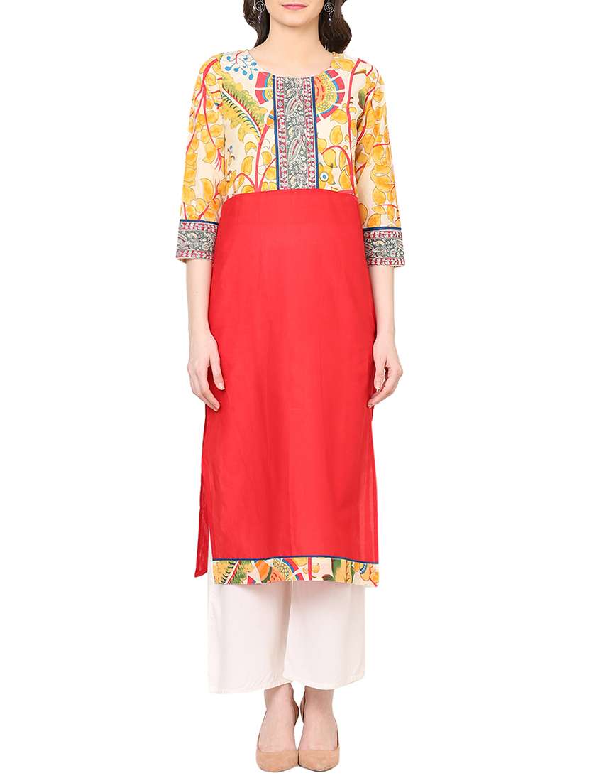 #1 red cotton printed straight kurta & similar products...