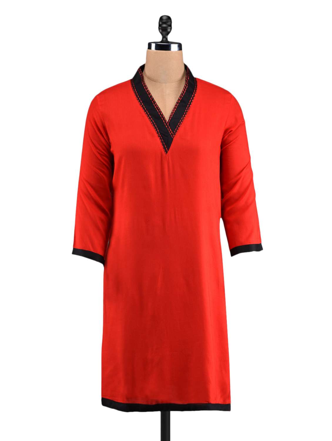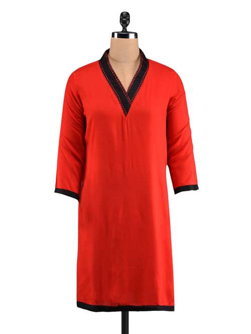 #1 red with black tipping detailed rayon kurti & इसी तरह के उत्पाद...