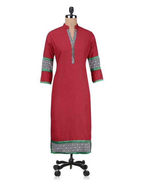 #1 monochrome border print solid color mandarin color kurta & similar products...