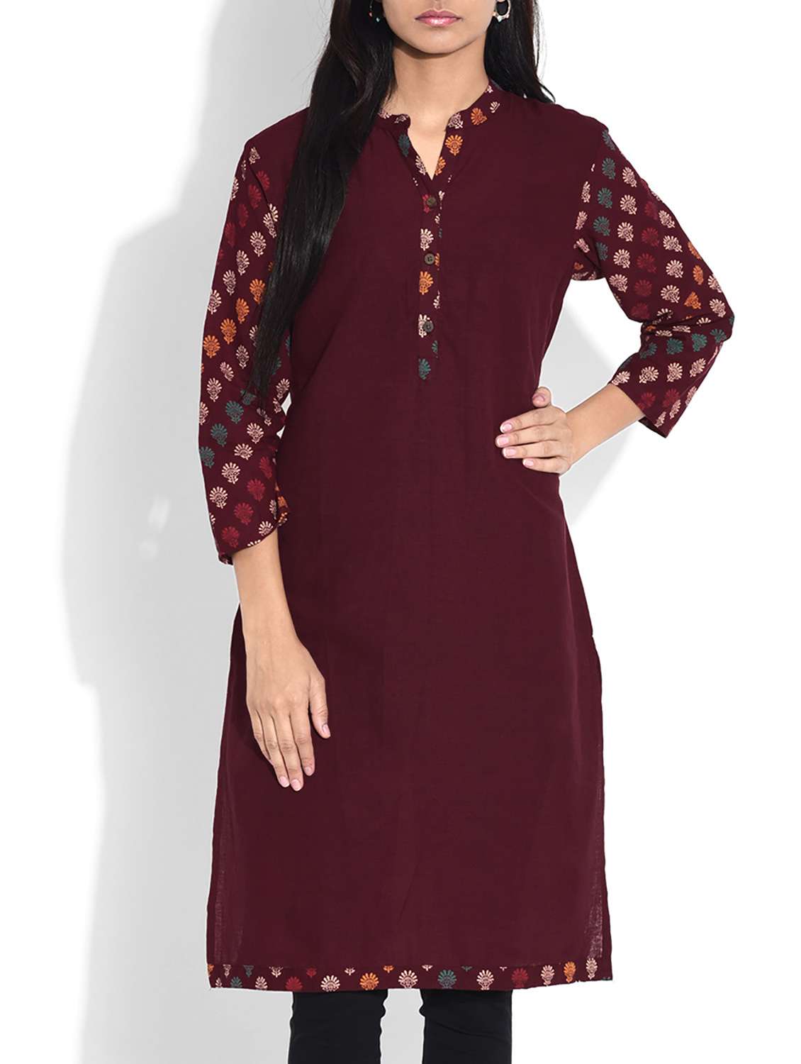 #1 maroon printed quarter sleeved cotton kurta & similar products...