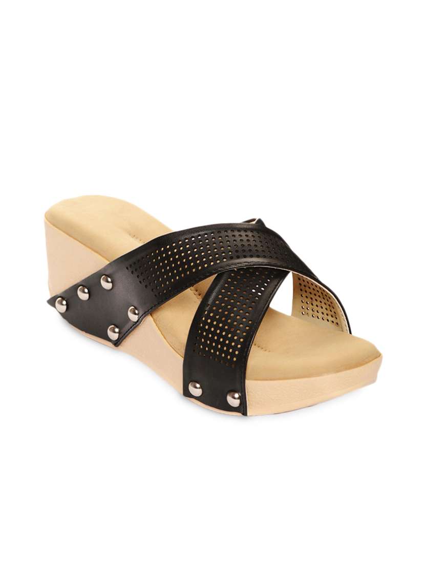 #2 black faux leather cutworked open toe wedge & similar products...