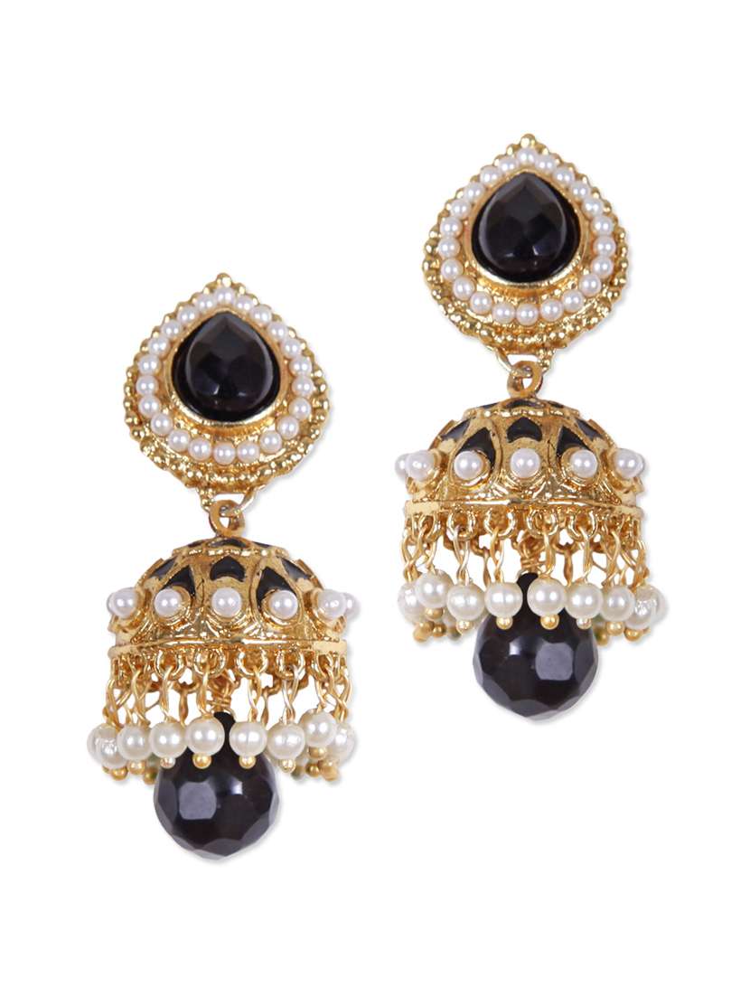 #4 traditional gold jhumkis with black stones & similar products...