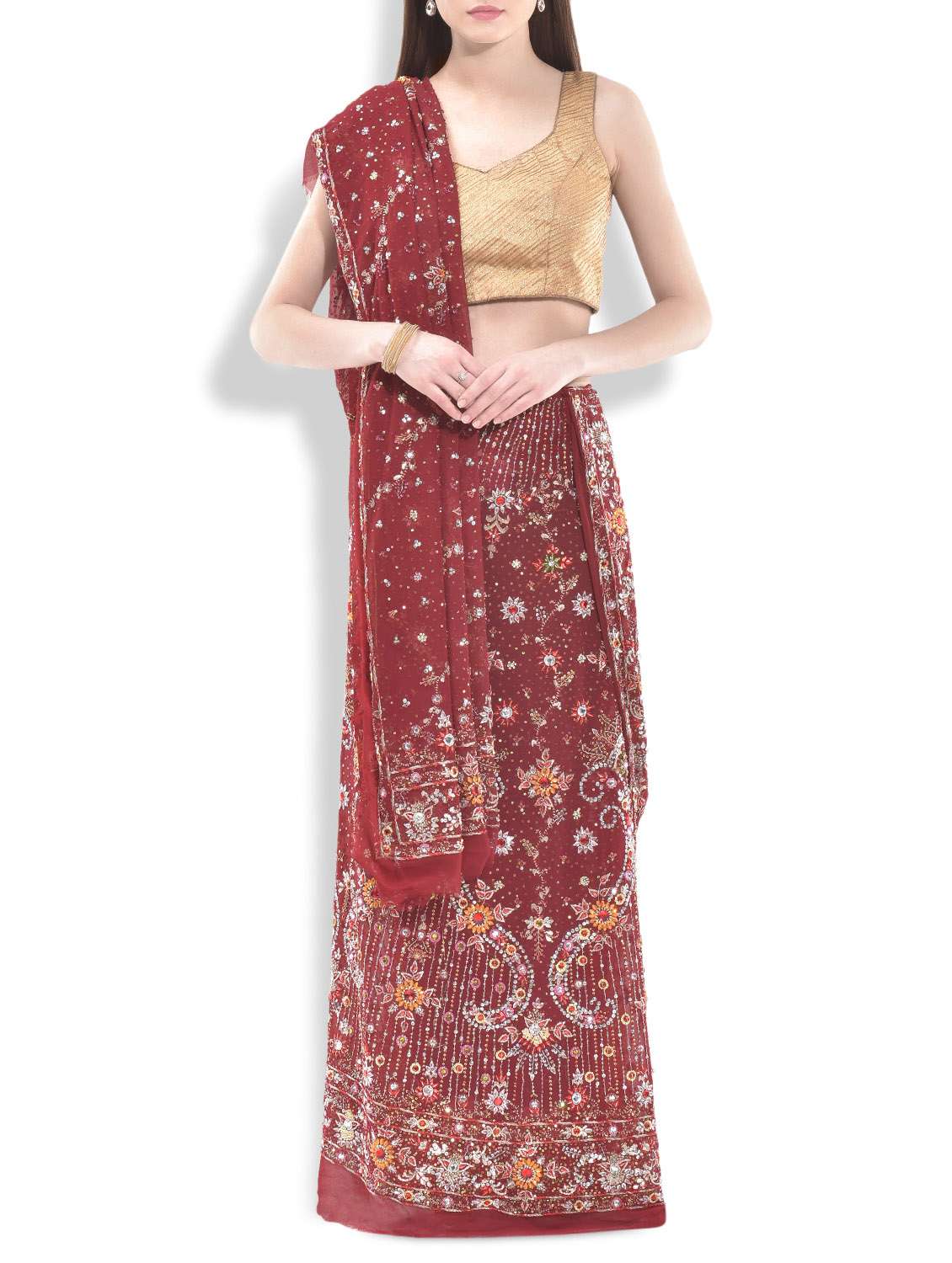 #1 maroon embroidered and embellished georgette unstitched lehenga set & similar products...
