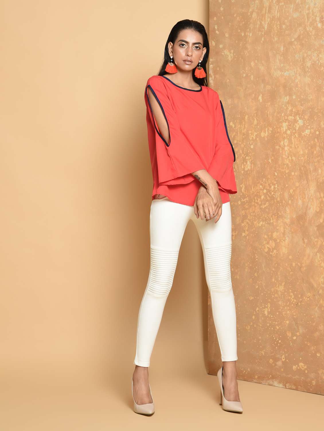 #2 contrast piping detail slit sleeved top & similar products...