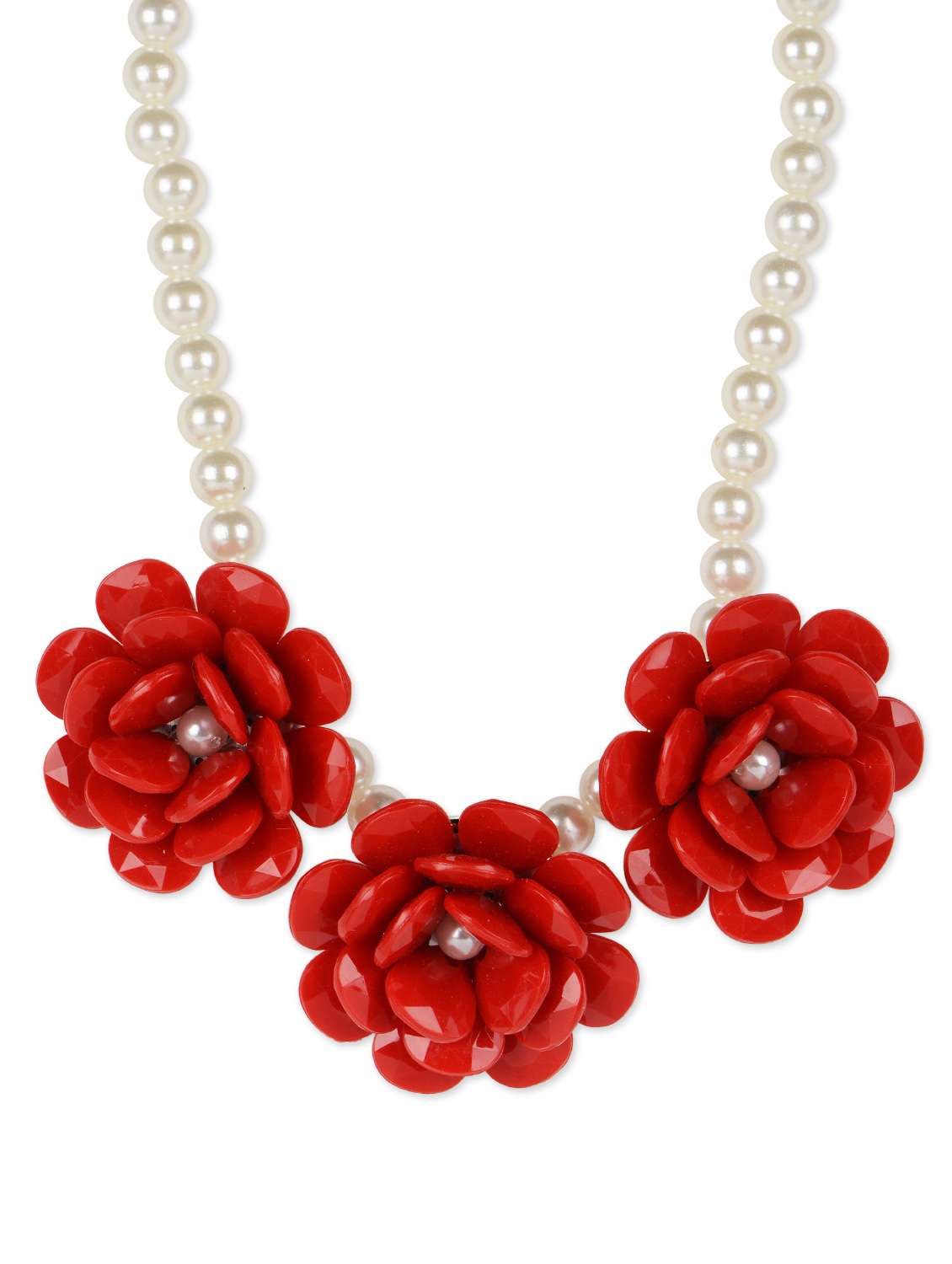 #2 red flower trio faux pearl necklace & similar products...