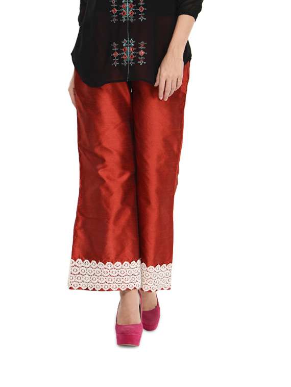 #1 maroon art silk palazzo with cotton lace hem & similar products...