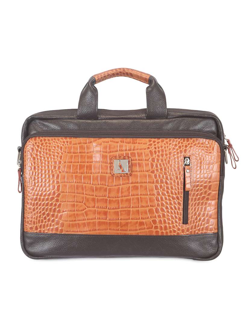 #3 textured dark brown and tan leather laptop bag & similar products...