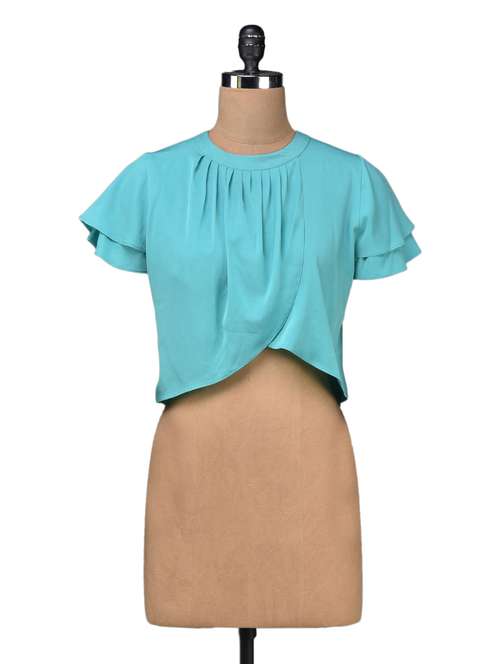 #1 Sea Green Asymmetric overlap Crop Top & similar products...