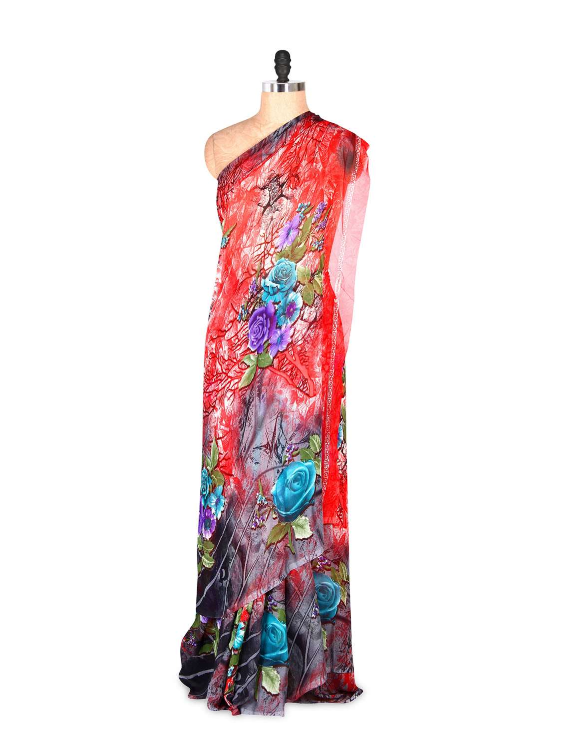 #1 gorgeous red floral printed art silk saree with matching blouse piece & similar products...
