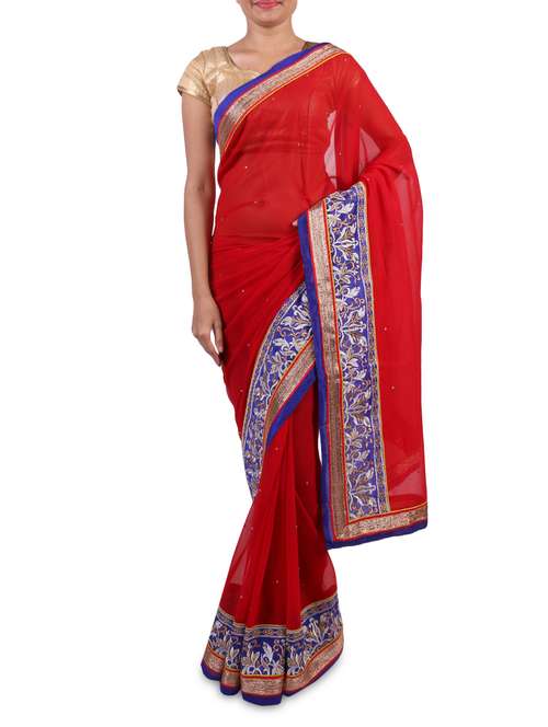 #1 red chiffon embroidered saree & similar products...