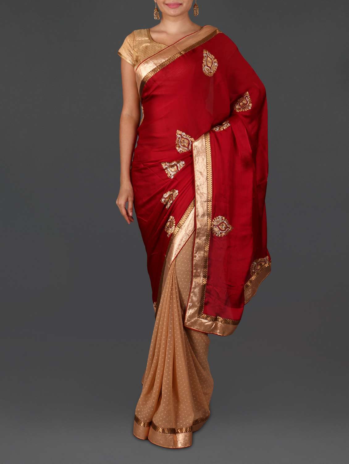 #1 red jacquard satin chiffon poly georgette embroidered saree & similar products...