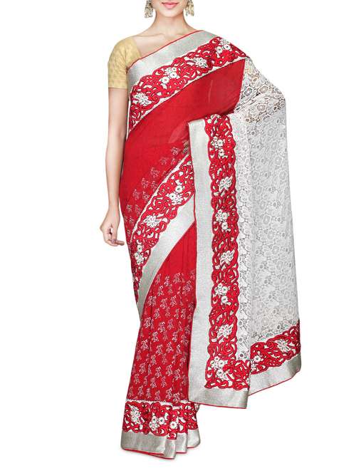 #1 red and white faux georgette printed saree & similar products...